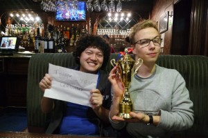 Nach dieser kleinen Stadtrundfahrt machte ich mich auf zum Hennessy Pub, dem eigentlichen Ziel. Um dorthin zu gelang benötigte ich 2 hilflose Anrufe an Lennart (siehe oben). Dort nahm ich (mehr oder weniger durch meine enorme Verspätung #deutschePünktlichkeit) an der Quiznight teil. Die Lennart, Saihknaa, ein Freund Saihknaas und ich mit Leichtigkeit (oder durch Hilfe der Bedienung, die sich unserer Charme nicht entziehen konnte) gewannen. Mit großem Pokal, aber ohne (reinvestierten) Geldgewinn von 40.000 machten Lennart und ich auf dem Heimweg durch den 2 Uhr Smog UBs.
