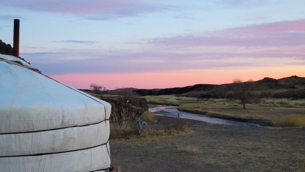 Der Abend hatte noch weitere Highlights wie die Idee in dem knöcheltiefen, halb zugefrornen Bach zu „baden“ (bei ca. -10°), oder aber im kleinen Kreis mit den Mongolen zu singen, begleiten von der Fortsetzung der Nachfeier von Kirstens Geburtstag.