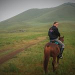 Nun folgte unser Offday, schliefen aus und während ein Teil, Tiere tränkte und sich am Russenbus fahren versuchte, spazierte ich durch die Steppe bei der man einfach eine halbe Stunde in eine Richtung läuft ohne etwas anders zu hören außer dem Wind und seine eigenen Schritte. Völlig tiefenentspannt kehrt ich zum Haus zurück und wohnte etwas der Schlachtung der Ziege bei, bis ich zum Fangen einer Ziege und eines Schafes abkommandiert wurde, welche ein Geschenk für die Mutter des Hirten waren. Eben diese Mutter hat unsere Steine begutachtet und diesen hohen Wert geschätzt. Nachdem wir noch irgendwelche Heilkräuter für die Mutter gepflückt und Steine für die Ziegenzubereitung gesammelt haben. War die Ziege schon vollkommend zerlegt. Deshalb kann ich nicht soviel zum Schlacht- und Zubereitungsvorgang aus eigener Erfahrung erzählen. Den Anfang konnte ich ja noch beobachten und dieser läuft so ab: Als erstes wird der Ziege der Bauch aufgeschnitten, dann wird mit der Hand hineingegriffen, die Aorta gesucht und durchgerissen. Im Folgenden verblutet die Ziege dann innerlich. Danach wird sie mit bloßer Hand gehäutet, dann wird der Magen raus genommen und geputzt um danach wieder befüllt zu werden. Ab jetzt wurde mir es erzählt aber ich hab kein Plan mehr wie genau es war. 😀 Aber es verlangt wahrscheinlich auch nicht jedem nach einer detaillierten Schlachtungsbeschreibung